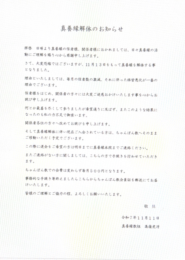 また恩師の二方はちゃんぽんの栄養を学ぶ修行の場として長崎県南部に「ちゃんぽん栄養山」を落慶し毎月信者が集い修行が行われております。
